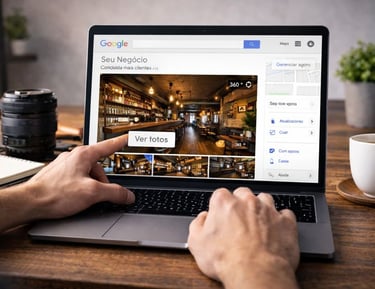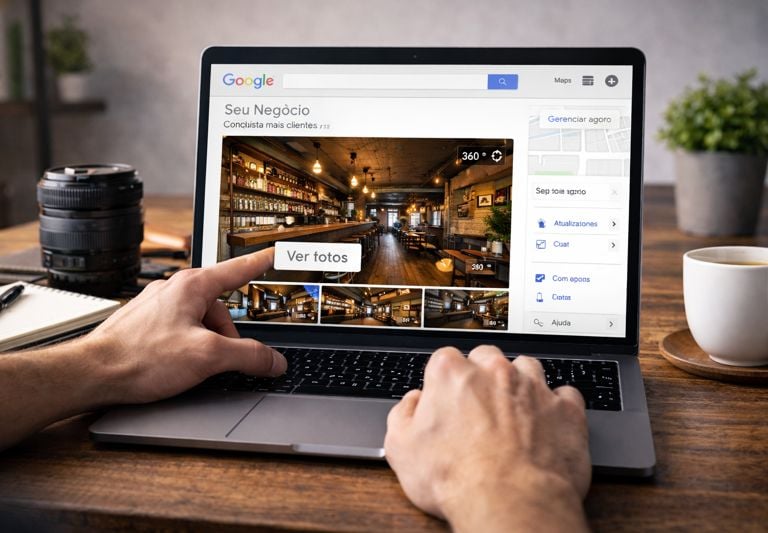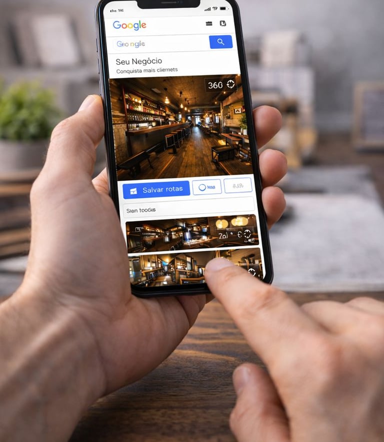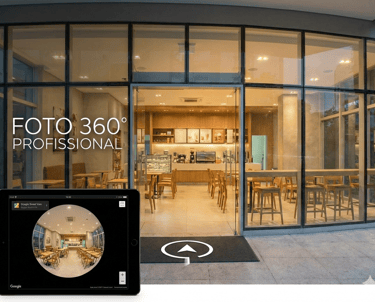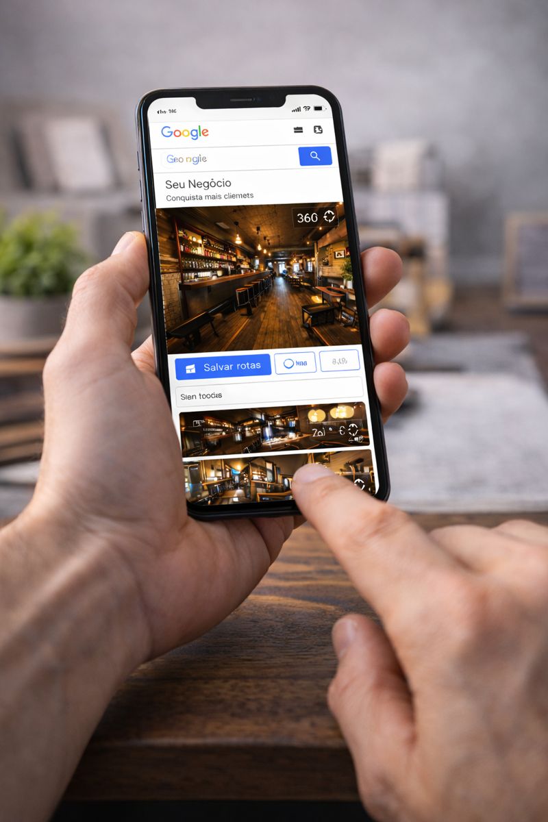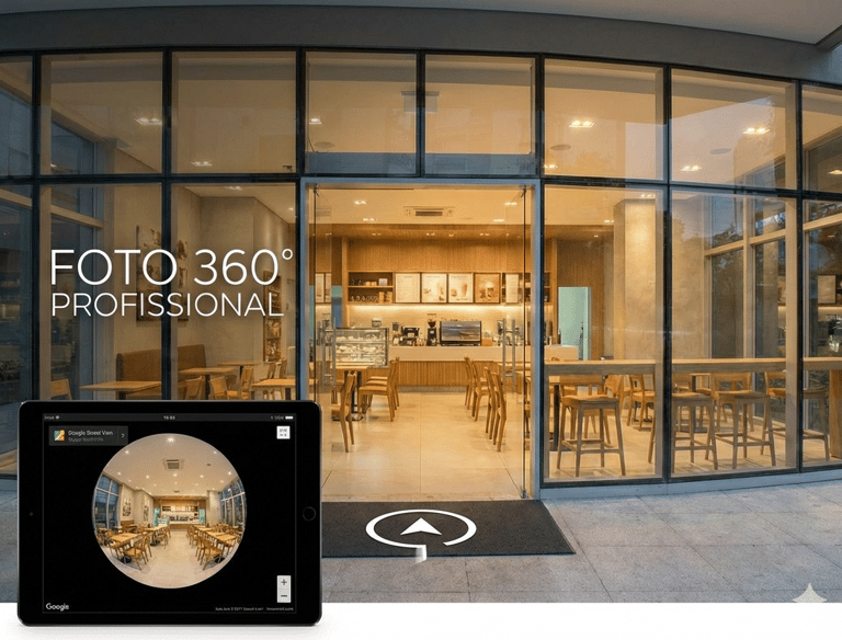 Foto 360 profissional e tour virtual para negócios locais aumentarem confiança, cliques e visitas pelo Google.