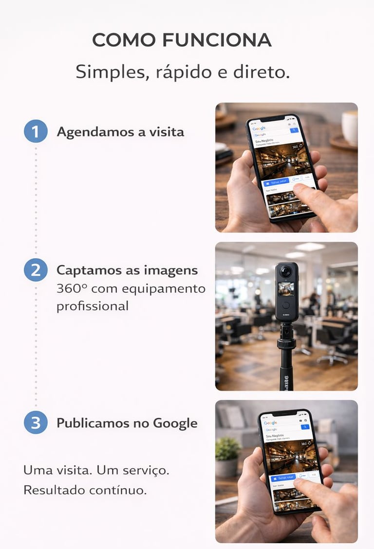Publicação correta no Google e orientação básica para você aproveitar melhor o tour virtual no dia a dia.
